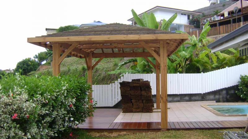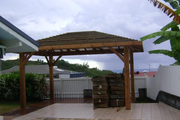 Kit Fare Pote'e à usage domestique en pin de Polynésie, bois taillés et saturés fixations comprises.